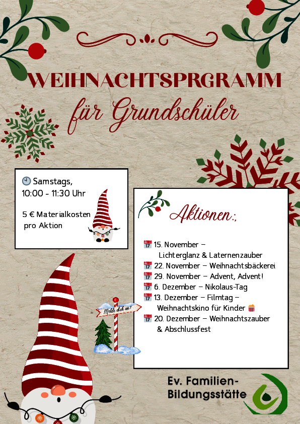 Wir freuen uns, eine abwechslungsreiche Veranstaltungsreihe für alle Grundschüler in der Vorweihnachtszeit präsentieren zu können.